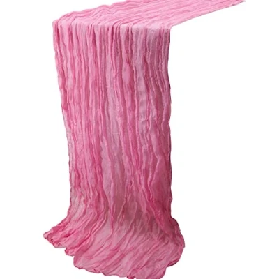 Time to Sparkle 2PCS Cheesecloth Table Runner 90X400CM Vintage Gauze Romantic for Wedding Bridal Shower Birthday Party Decor Pink