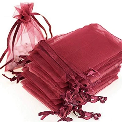 Time to Sparkle 50 Pack Organza Gift Bags Wedding Party Favour Jewellery Packing Pouches, Burgundy, 13x18cm