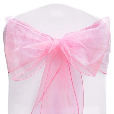 Time to Sparkle Pink 22x280cm Organza Chair Sashes Wider Fuller Cover Party Decoration 100PCS Bow for Wedding