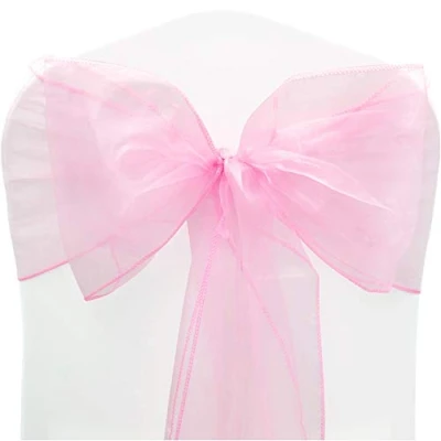 Time to Sparkle Powder Pink 22x280cm Organza Chair Sashes Wider Fuller Cover Party Decoration 60PCS Bow for Wedding
