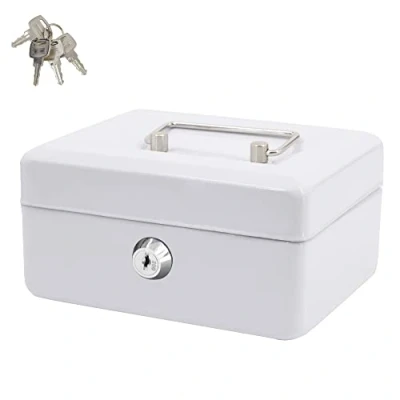 SIZE : The size of the cash boxes is 15*12*8cm DURABLE AND UNBREAKABLE: The cash boxes is unbreakable in our daily life due to strong metal material. Besides, the inner removable money tray is so sturdy built that you have no reason to worry about the security of your items. KEY LOCK: 4 keys and a privacy key lock keep valuables safe. Each cash box comes with different keys. REMOVABLE MONEY TRAY: The inner cash tray of the storage box is made up with six compartments, so your cash, coins and keys are able to be accepted separately. Besides, there is huge space for you to take care of checks, receipts and valuables at the bottom of the box. WIDE MULTIPURPOSE APPLICATION: The locking cash box is capable of varied occasions. No matter where you are, for instance, school, office, factory, supermarket and anywhere else, the lock box could actually breathe new life into your lifestyle.