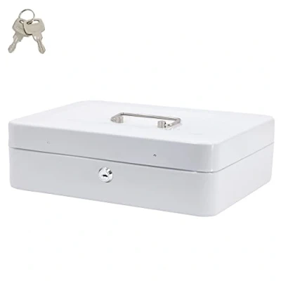 Time to Sparkle Small Lock Box Money Safe with Tray for Cash Metal Saving and Key Stainless Steel Handle 22 * 30 9cm White
