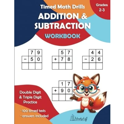 timed Math Drills for Mastering Double and Triple Digit addition subtraction Workbook: 100 days of tests ... 2nd 3rd grade (Timed Series)