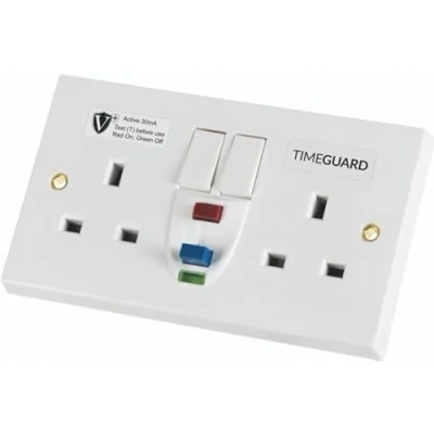 TimeGuard RCD Protected Double Gang White Switched Socket Active