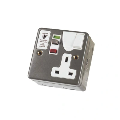 TimeGuard RCD Protected Single Gang Metal Switched Socket Active
