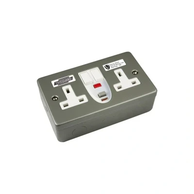 The Timeguard RCD08MPVN Valiance+ is a metal-clad, RCD-protected double gang switched socket designed for indoor use. Its built-in RCD reduces the risk of electric shock, while durable metal construction and independent switches deliver reliable control. Easy to install, it is suitable for both residential and commercial applications. Built-in RCD reduces the risk of electric shock by disconnecting faulty circuits quickly. Robust metal construction for long-lasting durability and a modern finish. Double gang layout provides two switched outlets for multiple devices. Independent switches let you control each outlet and reduce standby power use. Passive RCD operation for consistent protective response. Quick, straightforward installation for standard indoor wiring. Suitable for both residential and commercial indoor environments. Timeguard model RCD08MPVN with 2-pole design for comprehensive circuit protection.