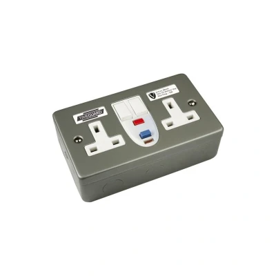 The Timeguard RCD07MAVN is a double gang metal-clad switched socket with built-in RCD protection for reliable electrical safety. Its robust metal construction offers durability and a contemporary finish, while the switched outlets provide convenient control of connected devices. The active RCD delivers fast fault detection with two-pole protection to reduce shock risk. Designed for indoor use, it fits standard installations and is suitable for both residential and commercial settings. Built-in RCD protection for enhanced protection against electric shock. Double gang layout to power two devices or circuits simultaneously. Durable metal construction that resists wear and provides a modern finish. Switched outlets for convenient on/off control of connected equipment. Active RCD operation for fast detection and interruption of earth faults. Designed for easy, standard-fit installation and quick upgrades. Indoor-rated and suitable for both residential and commercial installations.
