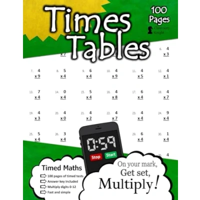 Times Tables: 100 Practice Pages Timed Tests Multiplication Math Drills KS2 Workbook (Ages 7 11)