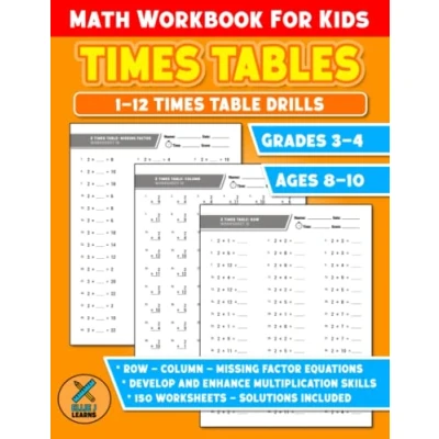 Times Tables Math Workbook For Kids: 1 12 Table Drills Mathematics Learning Activity Worksheets Kids Ages 8 10 Grades 3 4