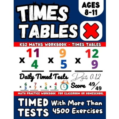 Times Tables Workbook for 8 11 Year Olds, Ks2 Maths 4, 5, 6, Multiplication Math Drills, Digits 0 12, Timed Tests