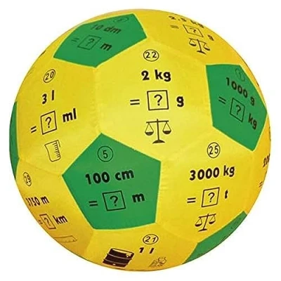 Educational game ball "Pello" | Our educational game ball "Pello" is more than just a toy. It is made from durable materials and printed with units of measurement conversion tasks. So the conversion of weights, volumes or length units can be practiced playfully. Play, move and learn: the educational game balls are lightweight and ideal for catching and throwing games. Children throw the ball in turn and solve tasks depending on the field the thumb points to when catching. Versatile learning games: whether outdoors, at school or at home - the educational game ball "Pello" can be used in many ways. The way to play also stimulates the imagination again and again, because the rules are left to everyone themselves Various themes: our educational game ball "Pello" is available in many designs with different themes. From images to expand vocabulary to maths tasks or even a question ball in English or French. About us: TimeTEX is a family-run company in Germany. Our company motto is "Do not talk, but act", which is why we are strongly committed to the environment and integration. This care for people and the environment is also reflected in the quality of our products.