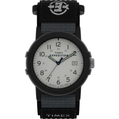 Matte black 38mm resin case, completed with a fast wrap strap White analogue display, easy to read, featuring full arabic numerals with day window INDIGLO Light Up Watch Dial and luminous hands Quartz movement with 3 hands Water-resistant to 100m (328 ft in general, suitable for snorkeling, as well as swimming, but not diving)
