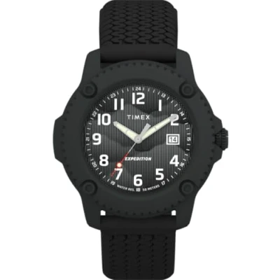 With its bold camo print dial and durable yet lightweight build, our Expedition Timber is strength, style, and utility, all in one fearless companion. This Analogue watch features a calendar function: Date and is equipped with Luminous Hands High quality Black Silicone strap, measuring 21 cm in length and 19 mm in width, with a Buckle Case diameter: 42 mm,case thickness: 11 mm, case colour: Black and dial colour: Black Water resistant: 5 bars-Weight: 52 g The watch is delivered in an original gift box and has a warranty of 2 years