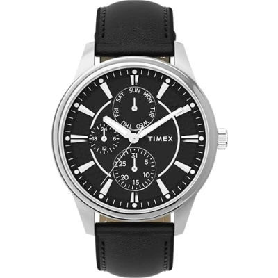 Timex Men's Chicago 45 mm Quartz Watch Black Leather Strap with Dial and Silver Tone Case TW2Y21600