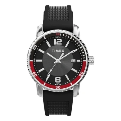 Timex Men's Dress 41mm Watch, Black Silicone Strap Dial Stainless Steel Case