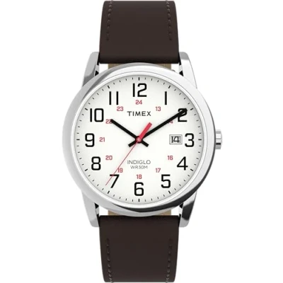 Timex Men's Easy Reader 38 mm Watch Brown Leather Strap with White Dial and Silver Tone Case TW2Y12600