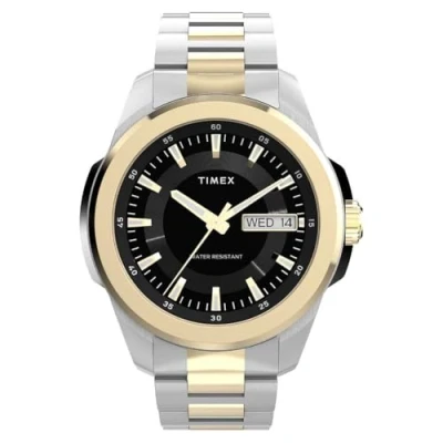 Timex Men's Essex Day and Date 45 mm Quartz Watch Two Tone Stainless Steel Bracelet with Black Dial TW2Y35300