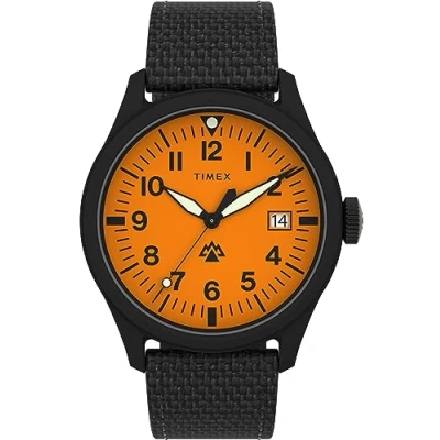 Timex Men's Expedition North 43 mm Watch Brown Eco Friendly Two Piece Quick Release Strap Orange Dial Case TW2W23700