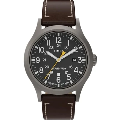 Rugged outdoor watch Leather strap Water resistant to 50 meters INDIGLO Light-up watch dial Fits wrist circumferences 150-205 mm