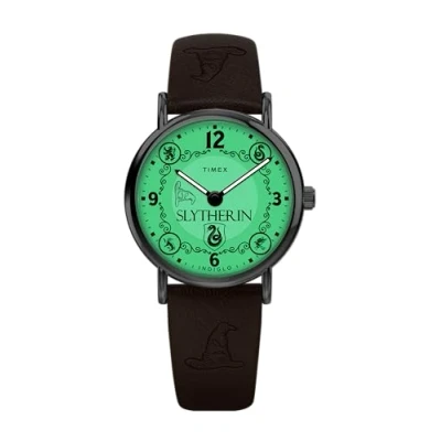 Timex Men's Harry Potter Slytherin House 38 mm Quartz Watch Brown Leather Strap with Cream Dial and Silver Tone Case TW2Y76400