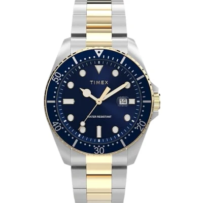 Timex Men's Trend 42 mm Watch Two Tone Stainless Steel Bracelet Blue Dial Silver Case TW2W71800