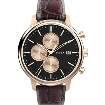 Thoughtful Design - Inspired by the character-rich architectural and cultural language of Chicago, from its modern skyscrapers to its historic cityscape, our Chicago collection is both strong and refined Chronograph - The main advantage of a chronograph is its stopwatch function, allowing you to measure elapsed time accurately and with ease Date Window - Easily track the date in a dedicated window beside 3 o'clock Fits wrist circumferences 150-205mm Water resistant to 50m (165 ft): in general, suitable for short periods of recreational swimming, but not diving or snorkeling