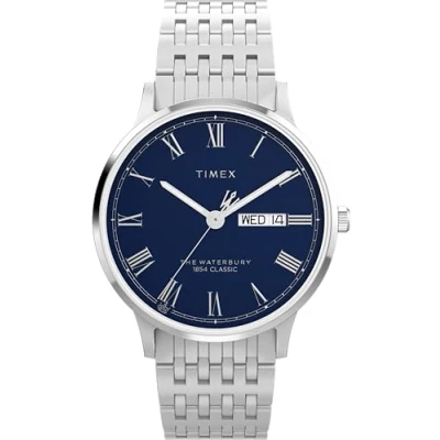 Timex Men's Waterbury 40 mm Watch, Stainless Steel Bracelet Blue Dial Case TW2Y28500