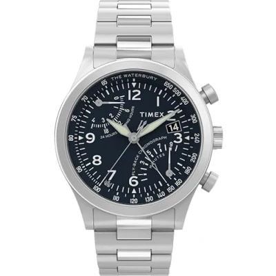 Timex Men's Waterbury 43 mm Watch, Stainless Steel Bracelet Blue Dial Case TW2Y29800