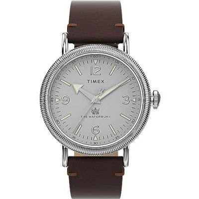Timex Men's Waterbury 40 mm Watch Brown Leather Two Piece Quick Release Strap Silver Tone Dial Case TW2W20300