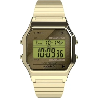 Timex T80 34mm Watch Gold Tone with Stainless Steel Expansion Band TW2R79000