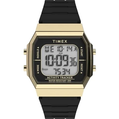 Timex Unisex Activity Tracker Sport 40 mm Watch, Black Silicone Strap Digital Dial Gold Tone Case