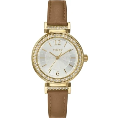 Timex Women's Dress 31mm Watch, Brown Leather Strap Silver Tone Dial Gold Case