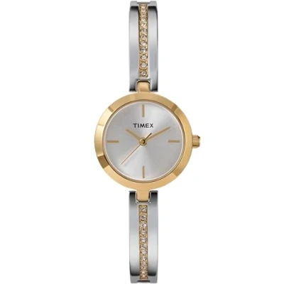 Timex Women's Main Street 25 mm Watch, Two Tone Alloy Bracelet Silver Dial Gold Case TW2W96200