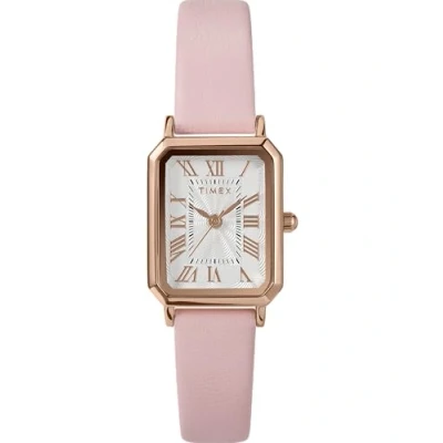 Timex Women's Trend 21 mm Watch, Pink Leather Strap White Dial Rose Gold Tone Case TW2Y01100