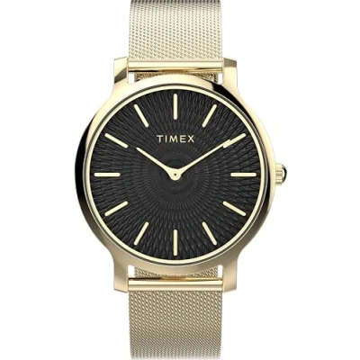 Timex Women's Trend 34 mm Watch Gold Tone Bracelet Quick Release Black Dial Case TW2Y07100