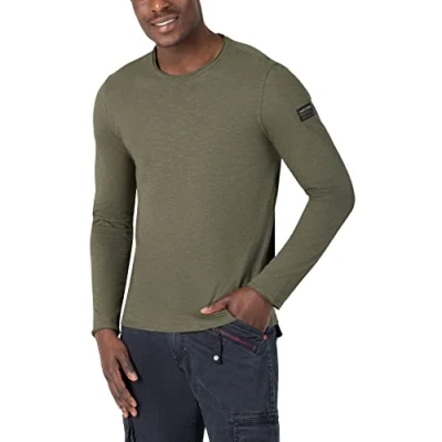 Timezone Men's Ribbed Basic Long Sleeved Shirt T, Grey Olive, S
