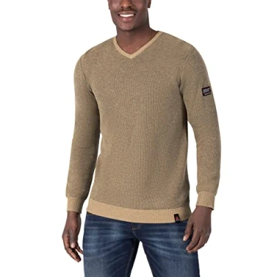 Timezone Men's Soft V Long Sleeved Shirt Sweater, Camel Beige, XXXL