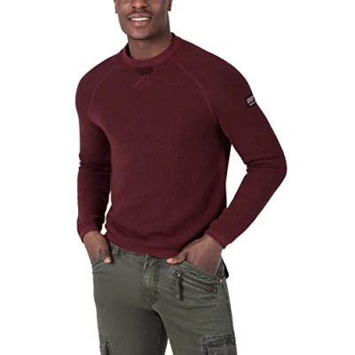 Timezone Men's Spiral Knit Crew Neck Sweater, Amarone red, L