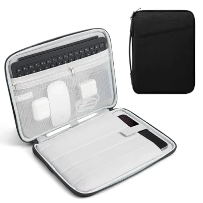 【Compatibility】 - Designed for 13 inch tablets and fits smart keyboard, compatible with iPad Air 13" (M3 2025/M2 2024), iPad Pro 13", iPad Pro 12.9", Galaxy Tab S9+/S9 Plus/S10+/S10 Plus/S9 FE+/S9 FE Plus 12.4", Remarkable Paper Pro 11.8". 【Full Protection】Made of splash-proof and durable material, the outer layer is anti-splash liquid and effectively blocks water and steam. Never worry about your laptop and accessories getting wet from splashes or rain. 【Multi-Pockets】Designed with 5 pockets, this sleeve allows you not only protect your previous tablet, but also provide much extra space for you to contain small items, such as cables, mouse, earphone, notes, wallet, cards and others. 【Hook & Loop Design】With the hook & loop in the main compartment, it can perfectly prevent tablet slip from the bag. The main compartment with thickened shockproof layer and the hook & loop provide full protection to the tablet. 【Specification】External dimension:34*26*2.5cm. Item weight: 8.11 OZ. It is easy for you to carry it when on-the-go, business or travel.