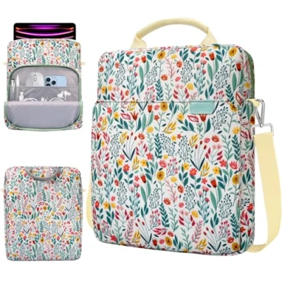 TiMOVO 13 Inch Tablet Sleeve Handbag for iPad Air M3 2025, Pro 13"/12.9", Galaxy Tab S9+/S10+/S9 FE Plus 12.4", with Shoulder Strap and Metal Hooks, Flowers