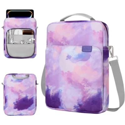 TiMOVO 13 Inch Tablet Sleeve Handbag with Shoulder Strap for iPad Air 13", Pro 12.9", Galaxy Tab S9+/S9 Plus/S10+/S10 Plus/S9 FE+/S9 FE Plus 12.4", Watercolor Purple