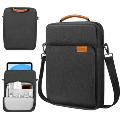 【Compatibility】- Designed for 9-11 inch tablets, this tablet bag is compatible with iPad 11-inch A16 2025 (11th Generation), iPad 10th Generation (10.9"), iPad 9th/8th/7th Gen. (10.2"), iPad Air 11 (M3 2025/M2 2024), iPad Air 5th/4th Gen. (10.9"), iPad Pro 11", Galaxy Tab A9+/A9 Plus 11", Galaxy Tab S9 11"/S9 FE 10.9", Galaxy Tab S6 Lite 10.4", Remarkable 2 10.3". 【Waterproof & Durable Materials】 - This protective sleeve is made of premium materials with fine workmanship, the water-repellent exterior can protect against fluids and dust, and the padded foam interlayer and soft fleece interior lining are soft and safe for your device, keeping your device from being accidental bumps and scratched. 【Large Capacity】 - Comes with multiple compartments: 1 x main compartment to keep your tablet, 1 x front compartment, 1 x side compartment, 2 x open mesh pocket and 1 x zippered mesh pocket, offering enough space for your accessories like cables, mouse, earphone, notes, wallet, cards and more small items. 【Portable Design】 - Built with an adjustable shoulder strap and a comfortable handle for you to carry outside easily. Perfect for carry while on-the-go, business or travel. And with the compact size and light weight, you can also transport inside your backpack or briefcase. 【Size&Weight】-Externaldimensions:12.2*9.06inch(31*23cm),itemweight:7.69oz(218g).