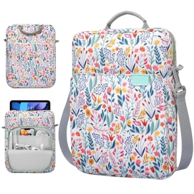 TiMOVO 9 11 Inch Tablet Sleeve Bag with Shoulder Strap for iPad 10th Gen. 10.9", 9th/8th/7th 10.2", Air 11/Air 5th/4th 10.9",Galaxy Tab A9+/A9 Plus 11", Flowers