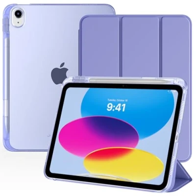 TiMOVO Case for iPad A16 11th Generation 2025 11 Inch/iPad 10th 2022 10.9 Inch with Pencil Holder, Slim Stand Cover Translucent Back, Support Touch ID, Auto Wake/Sleep, Lavender Purple