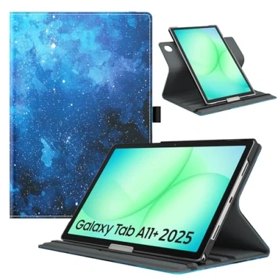 TiMOVO Rotating Case for Samsung Galaxy Tab A11+/A11 Plus 11 Inch 2025 SM X230/X236/X238, 90 Degree Stand Cover, Support Auto Wake Sleep, Blue Starry Sky