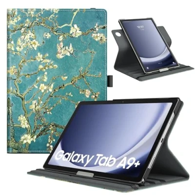 TiMOVO Rotating Case for Samsung Galaxy Tab A9+/A9 Plus 11 Inch 2023, 90 Degree Stand Cover, Support Auto Wake Sleep A9+ Tablet SM X210/X216/X218, Apricot Blossom