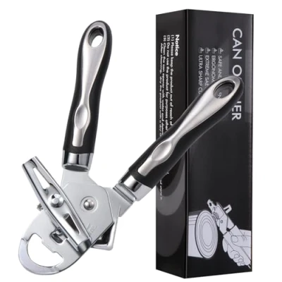 Strong Stainless Steel Blade: Equipped with a durable and sharp stainless steel cutting wheel, this can opener easily pierces through any can! Rust-resistant for long-lasting performance - essential kitchen accessories Extra Smooth Cutting: The tin opener effortlessly latches onto cans and locks securely in place for a clean, smooth cut every time! No more jagged edges - just excellent results Magnetic Lid Removal: We smartly designed a strong magnet on the side of the can opener to safely lift the lid after cutting! Say goodbye to sharp edges - keep your hands safe and your food clean Effortless Knob: This can opener manual features an oversized knob that is easy to turn and provides a secure grip, making it simple to open even large cans! Friendly to the seniors, women. Tin openers for arthritis hands Ergonomic Handle: Slip-resistant, soft-grip handles ensure comfort and and are oversized to absorb more pressure and tension! Open cans with ease - no effort, just a grip All-in-One Design: More than just a can opener - it includes a built-in bottle opener for beer, soda, and other bottles with lids to meet all your needs! Ideal for kitchens, camping, picnics, bars, and restaurants Turn the knob clockwise, otherwise it may fall apart or get damaged Hand wash (recommended) and dry completely