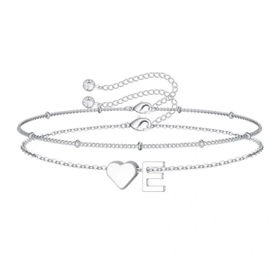 TINGN Gifts for Teenage Girls, 14K White Gold Plated Layered Silver Heart Initial E Bracelets Womens Bracelet Girl Kids Bridesmaid Gift Girls Jewelry
