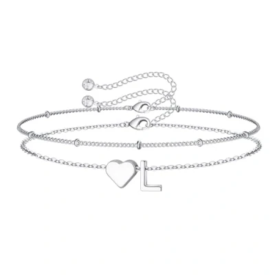 TINGN Gifts for Teenage Girls, 14K White Gold Plated Layered Silver Heart Initial L Bracelets Womens Bracelet Girl Kids Bridesmaid Gift Girls Jewelry