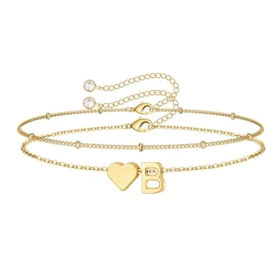 TINGN Gold Heart Bracelets for Women, 14K Plated Layered Initial B Bracelet Womens Teen Girl Gifts Teenage Girls Ladies Birthday Her Women Jewelry